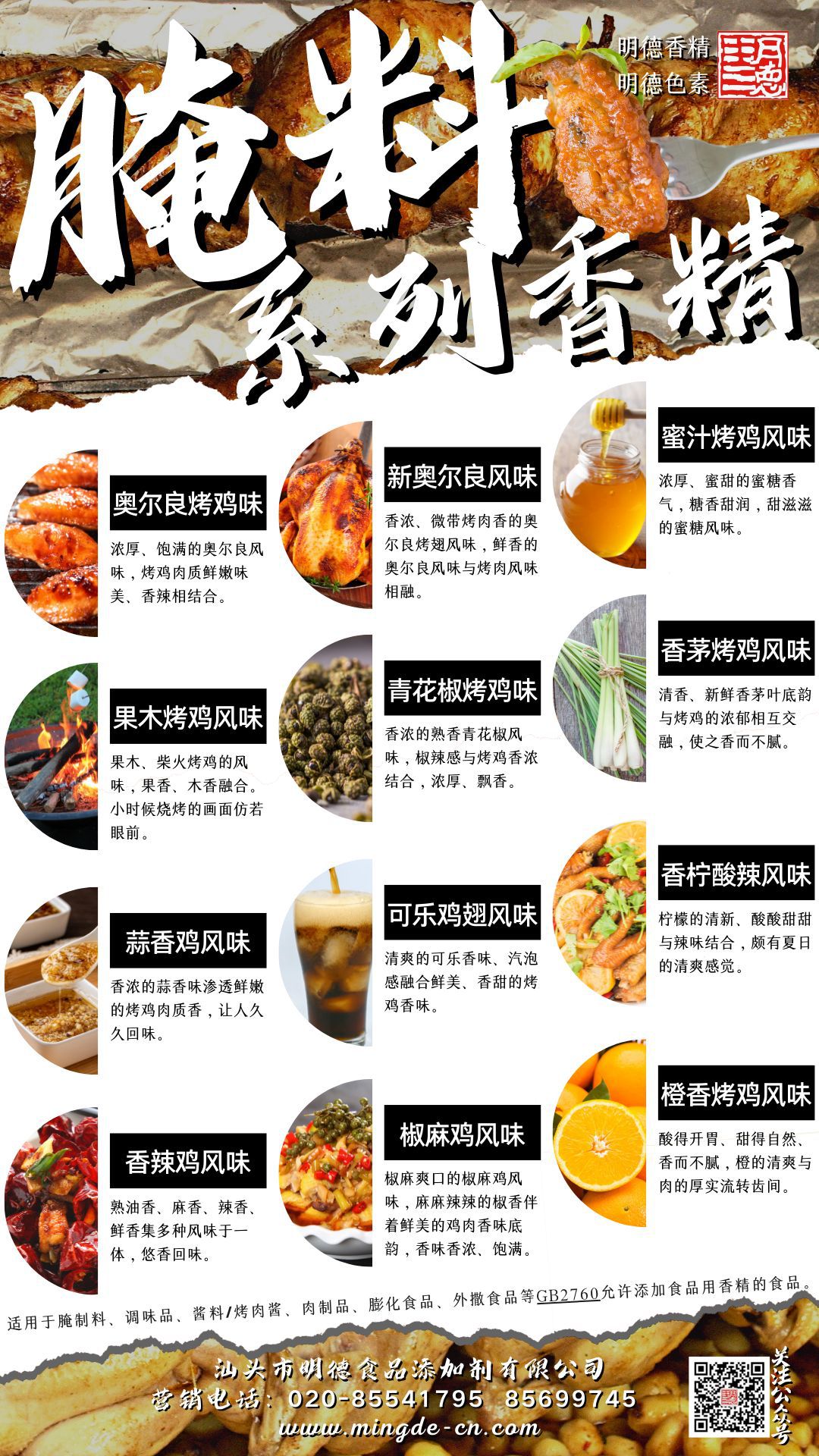 適用范圍:醬料/烤肉醬、肉制品、腌制料、調(diào)味品、膨化食品、外撒食品等GB2760允許添加食品用香精的食品。