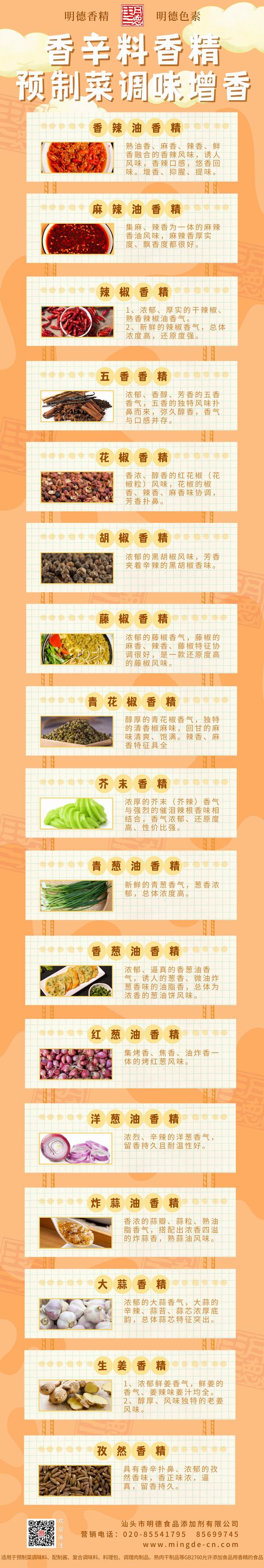 此外 明德食品添加劑 還研發(fā)了眾多香辛料風(fēng)味類(lèi)香精,如小蔥、青蔥、炸蔥,如藤椒、花椒、麻椒等等,近10年來(lái)在調(diào)味料、醬料、火鍋底料多有應(yīng)用,頗受好評(píng)。諸如此類(lèi),各有特色。歡迎有興趣的廠(chǎng)家朋友們咨詢(xún)聯(lián)系!-